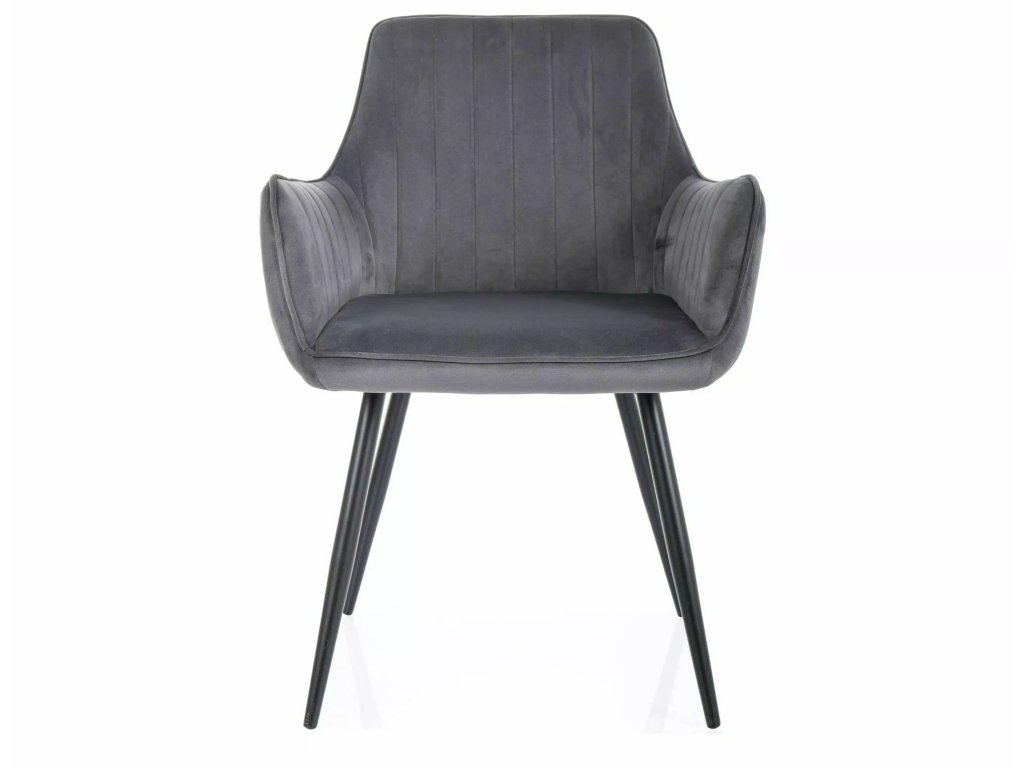 Baršunasta blagovaonska stolica s crnim nogama APPLE siva