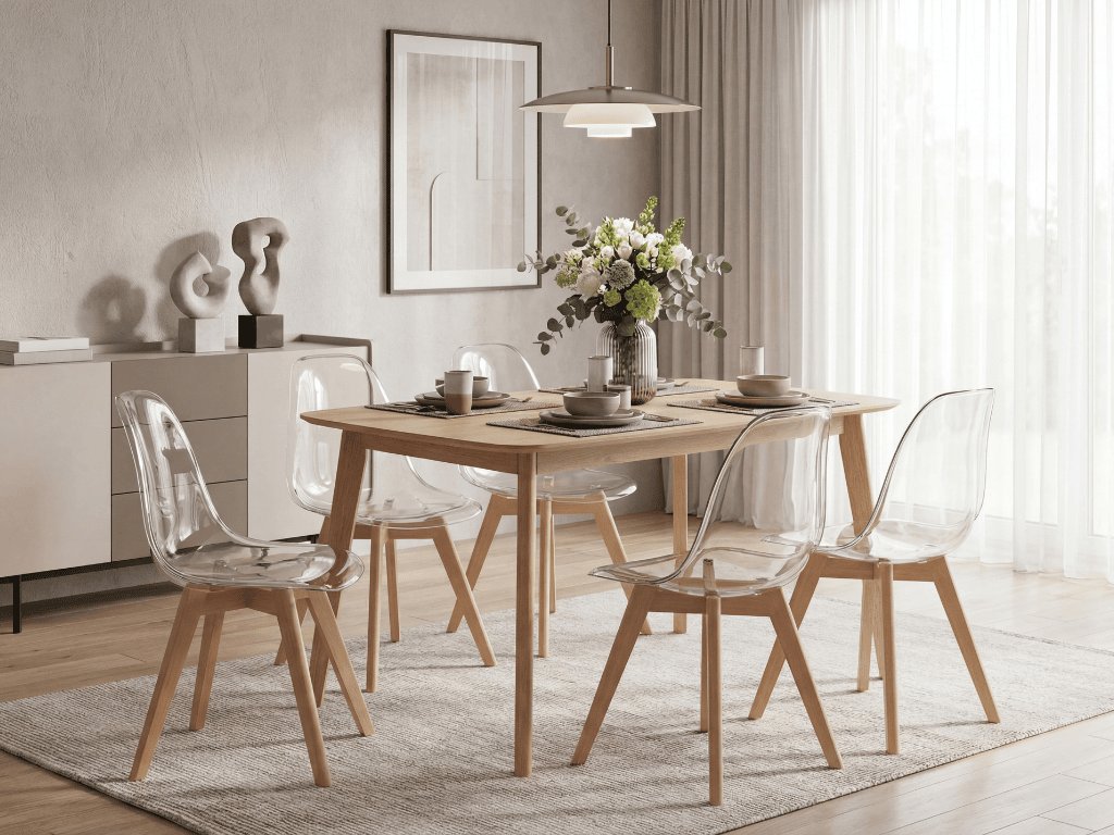 Skandinavska blagovaonica simbol je jednostavnosti, svjetlosti i prirodne harmonije. Kombinacija čistih linija, prirodnih materijala i blagih tonova stvara ugodan prostor koji poziva na druženje s obitelji i prijateljima. S naglaskom na funkcionalnost i estetiku, postaje mjesto gdje se spaja udobnost s bezvremenskim dizajnom. Dodajte nekoliko dodataka u neutralnim tonovima i blagovaonica će dobiti svoj jedinstveni karakter ispunjen mirom i elegancijom.