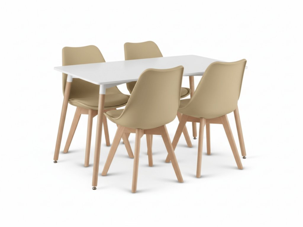 Blagovaonski set 1 + 4, bijeli stol ADRIA 120x80 cm + bež stolica BALI MARK sa bukovim nogama