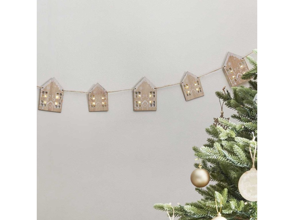- Na girlandi je obješeno 8 kom drvenih kućica
