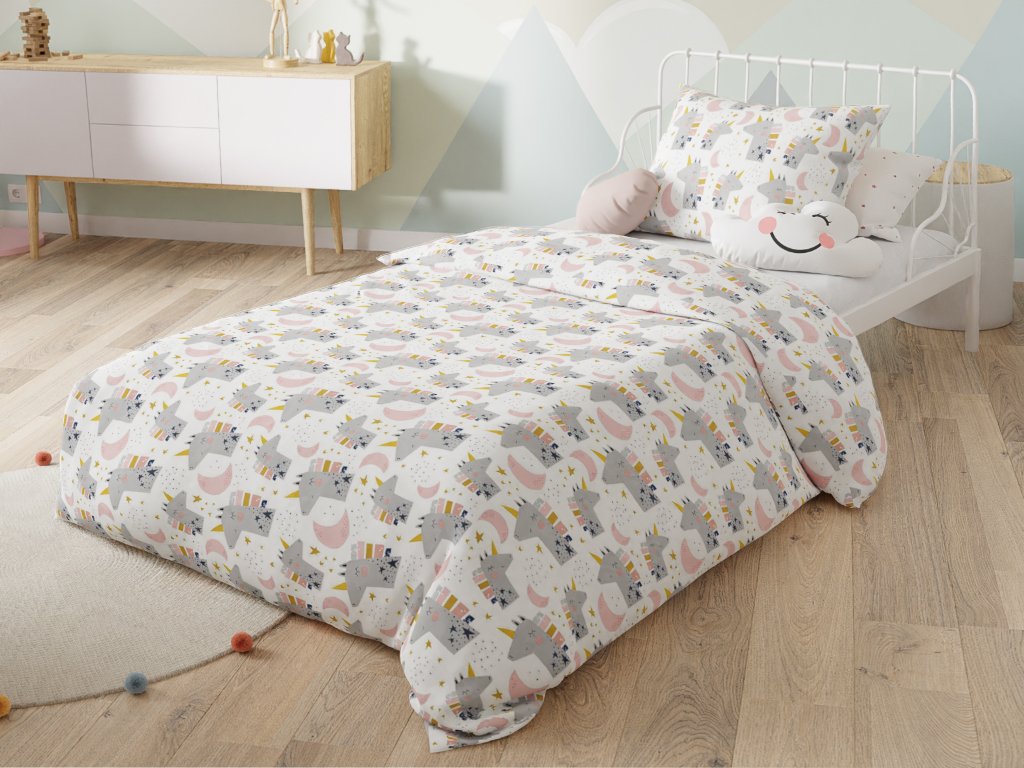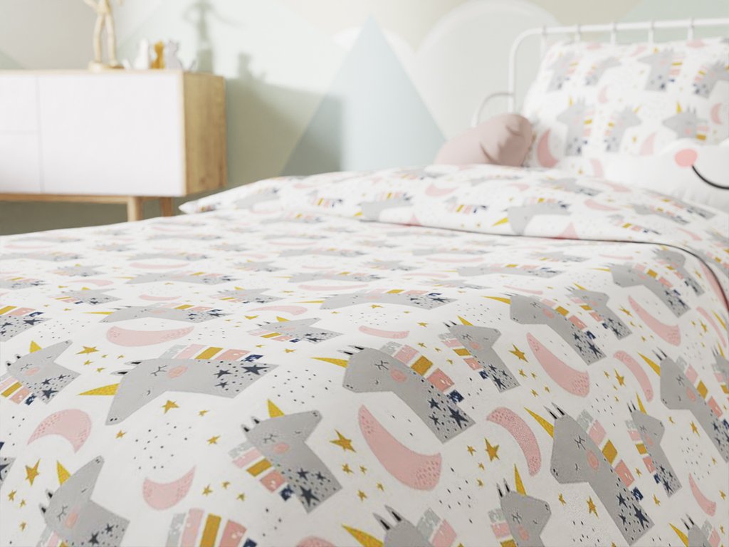 Pamučna posteljina za krevetić JEDNOROG I MJESEC bijela