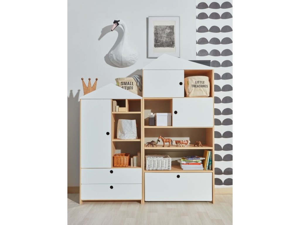 - police, prednji dijelovi i vrata ormarića za igračke izrađeni su od MDF-a i premazani bijelom bojom sigurnom za djecu, certificiranom prema normi EN71 / 3
