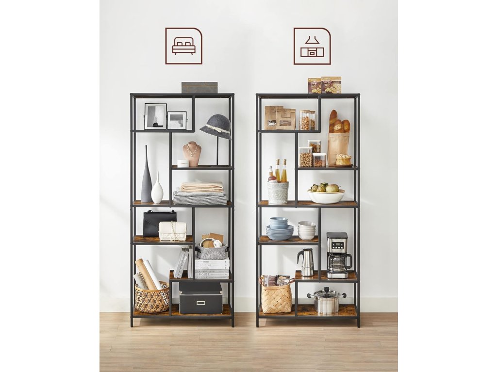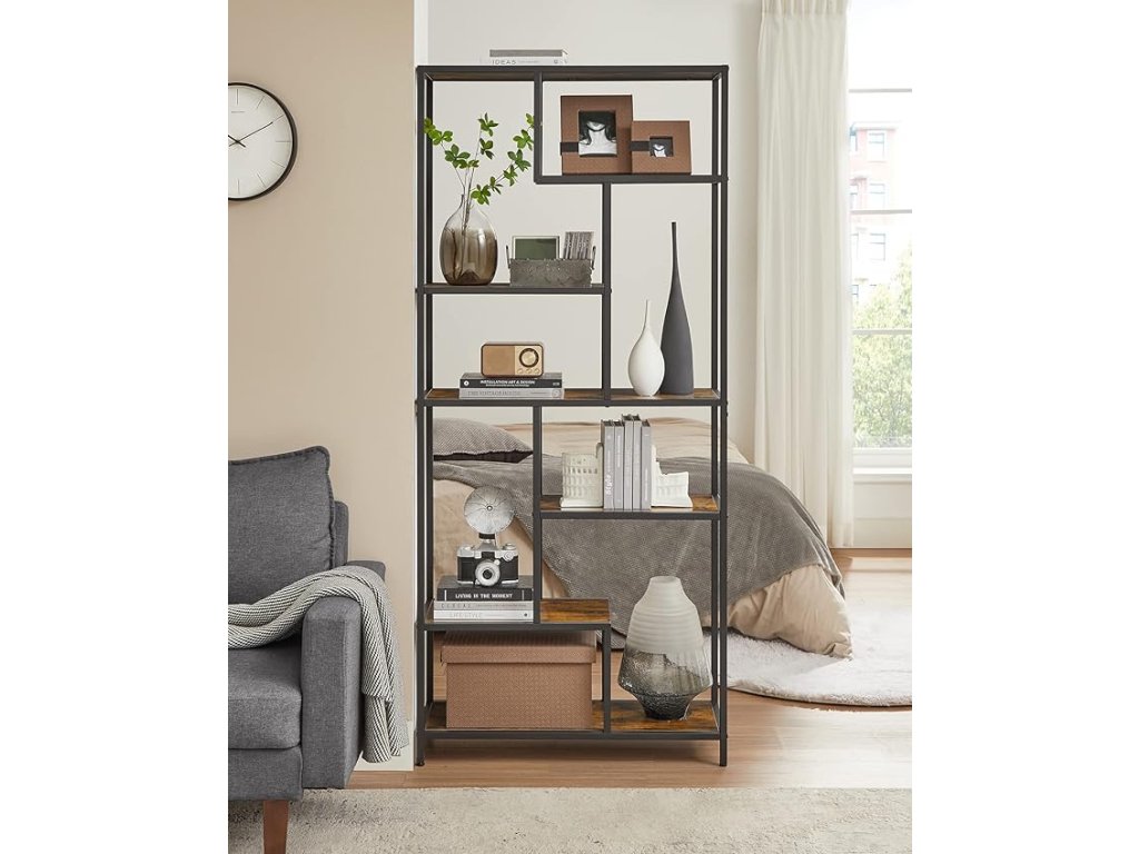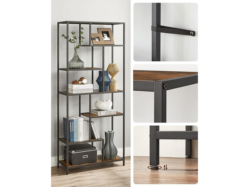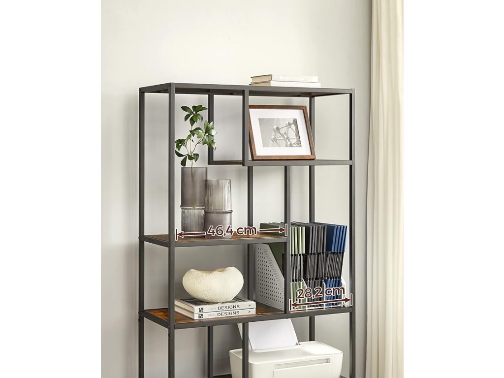 Jedinstveno raspoređene police čine ovu knjigu ne samo funkcionalnim već i vizualno privlačnim elementom interijera. Istaknite omiljene knjige, dekoracije ili biljke i stvorite osobni prostor prema svojim zamislima. Zbog prozračnog dizajna idealna je i za manje prostorije gdje može poslužiti kao stilska pregrada zone bez gubitka svjetla. Bilo da je u radnoj sobi, dnevnom boravku ili spavaćoj sobi, ovaj regal će privući pažnju i organizirati vaš prostor s lakoćom.