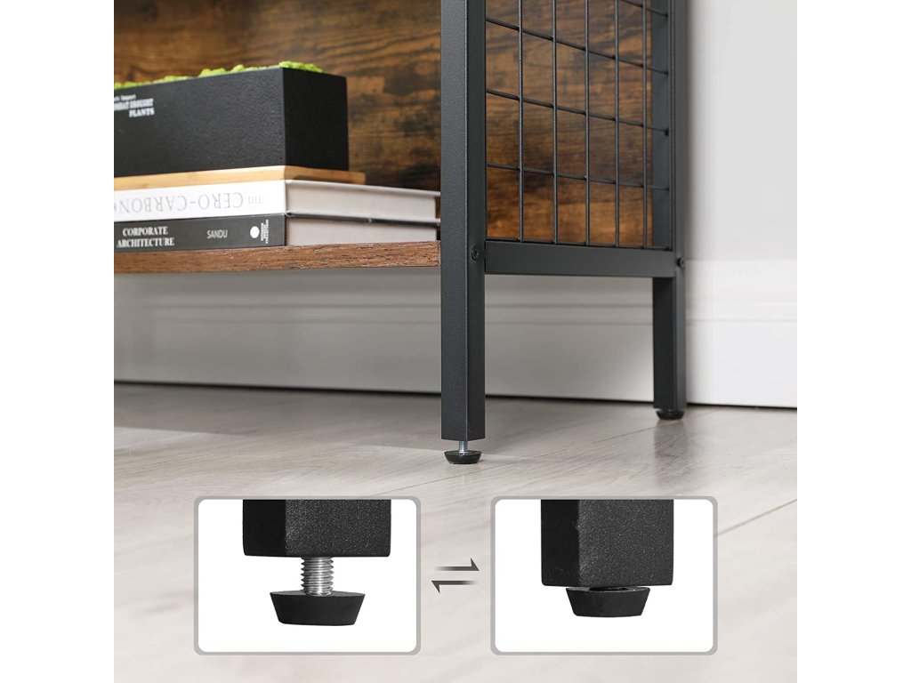 - Robusni okvir od crne čelika s rustikalnim drvenim elementima