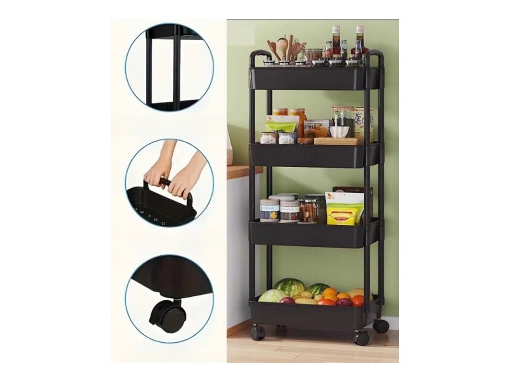 Polica na kotačićima POZIO 39x27x95 cm crna