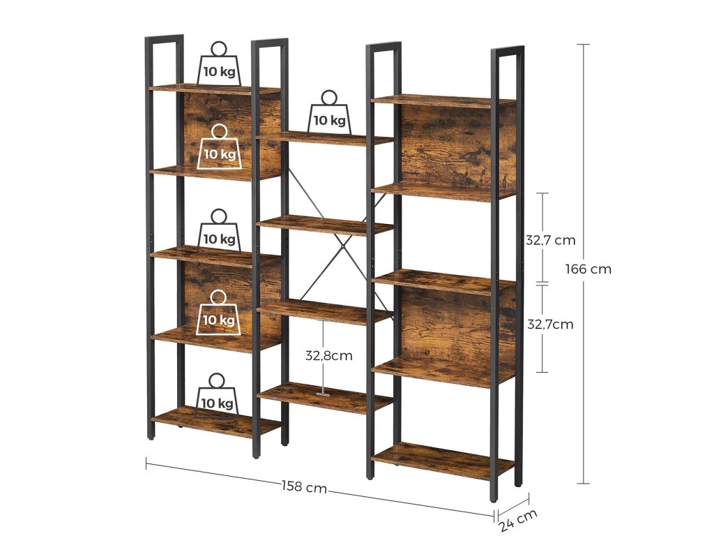 Polica za knjige TAYLOR 14 pregrada 166x158 cm, rustikalno smeđa
