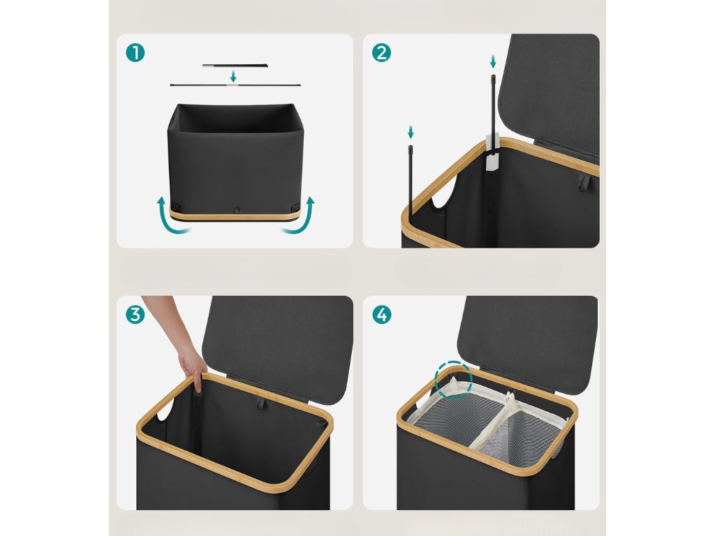 Košara za rublje 130 L DUOBOX dvokomorna, crna