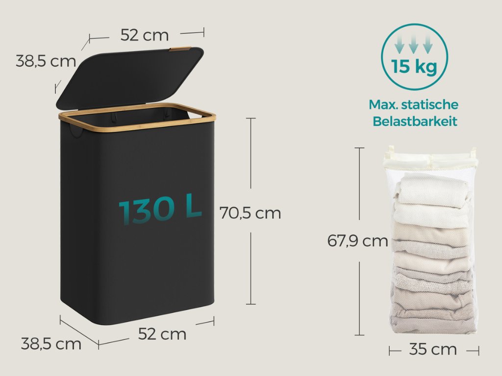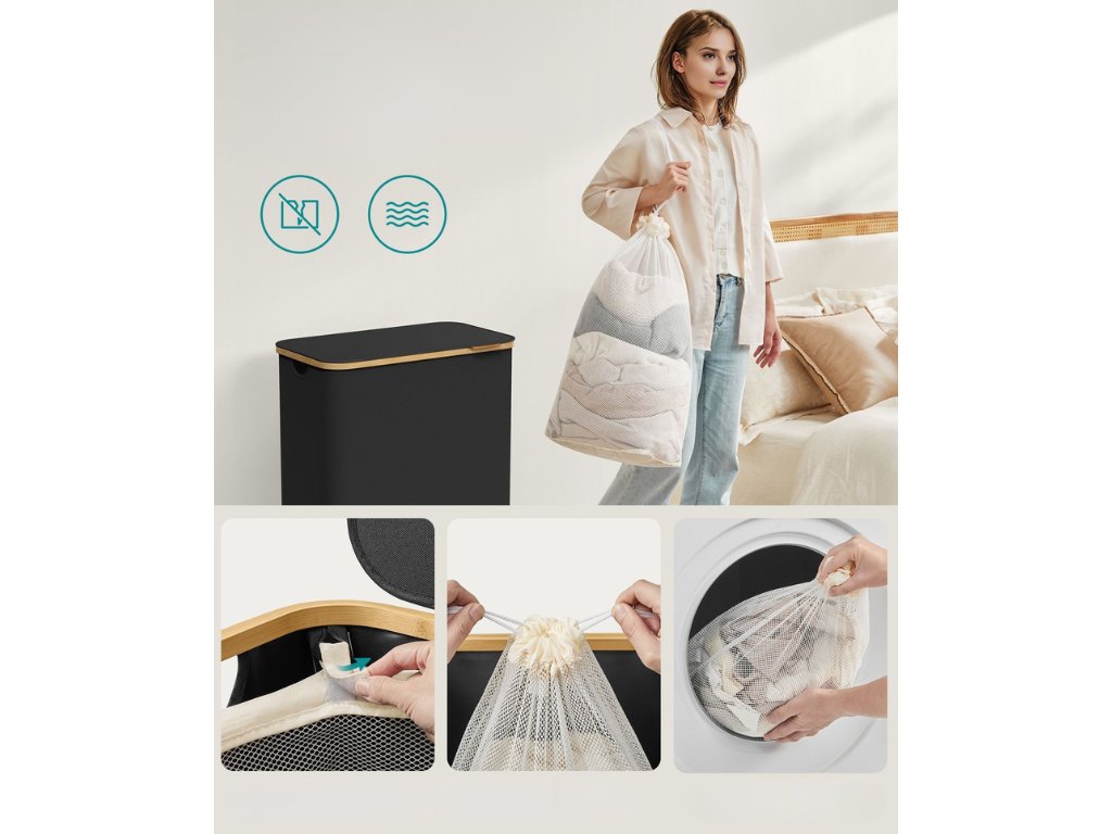 Zaboravite na nered u kupaonici ili praonici. Ova košara za rublje nudi vam jednostavno i učinkovito sortiranje zahvaljujući izmjenjivim tekstilnim vrećama. Nema više ručnog sortiranja prljavog rublja, dovoljno je izvaditi vreću i oprati je. Košara je izrađena od kvalitetne tkanine Oxford 600D, koja nije samo postojana u boji, već je i vrlo otporna na habanje, trganje i prljavštinu. Dovoljno je obrisati vlažnom krpom i ponovno zasjati čistoćom. Praktičan dizajn i izdržljivi materijali čine ga idealnim pomoćnikom u svakom domu.