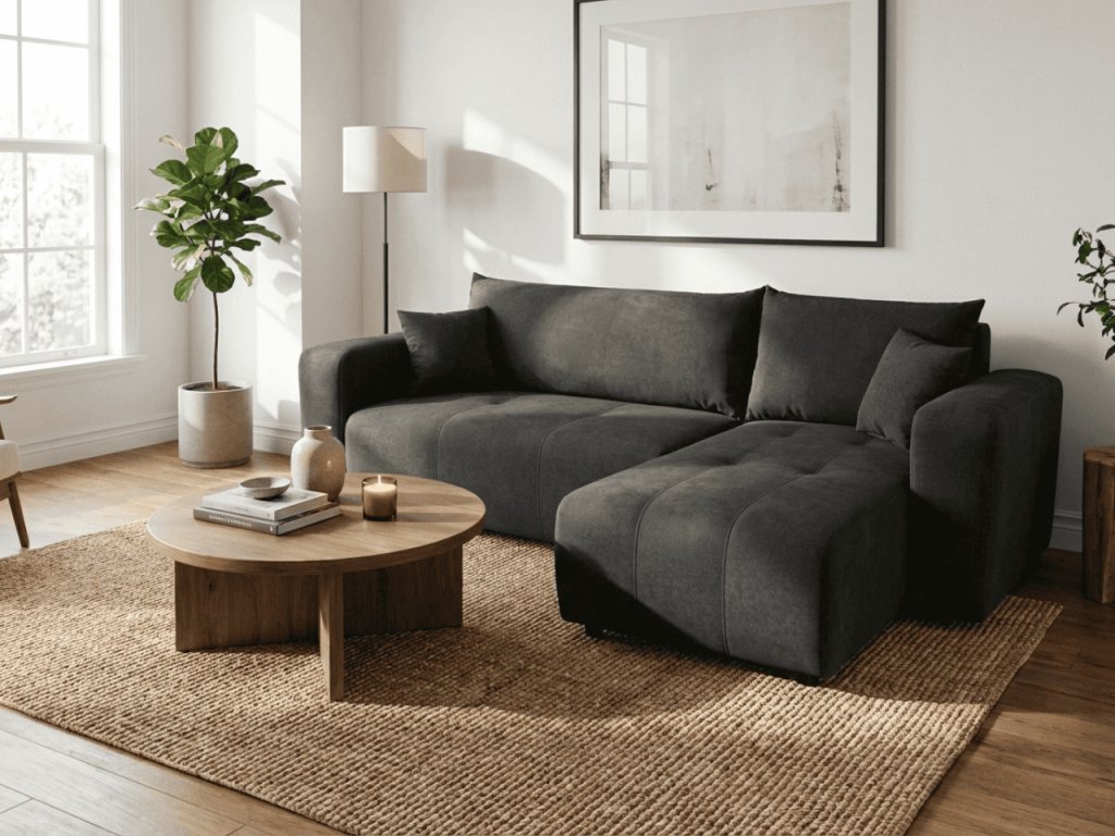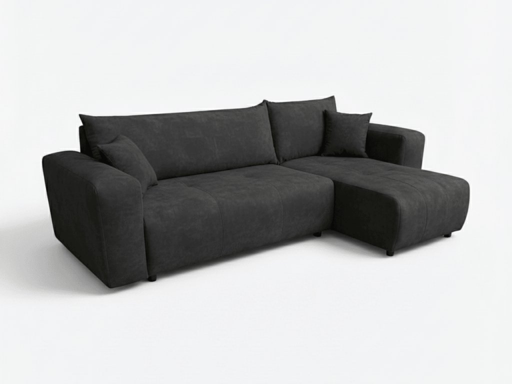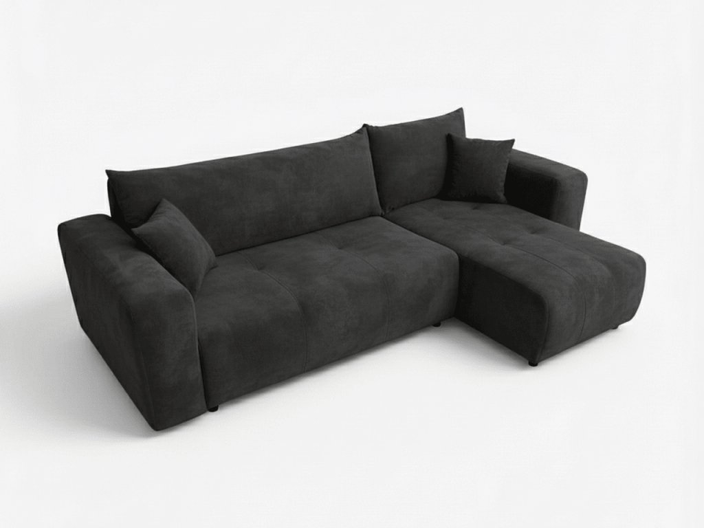 Crna razvlačiva kutna garnitura SORELA, obostrana + 2 jastuka GRATIS MANILA 18