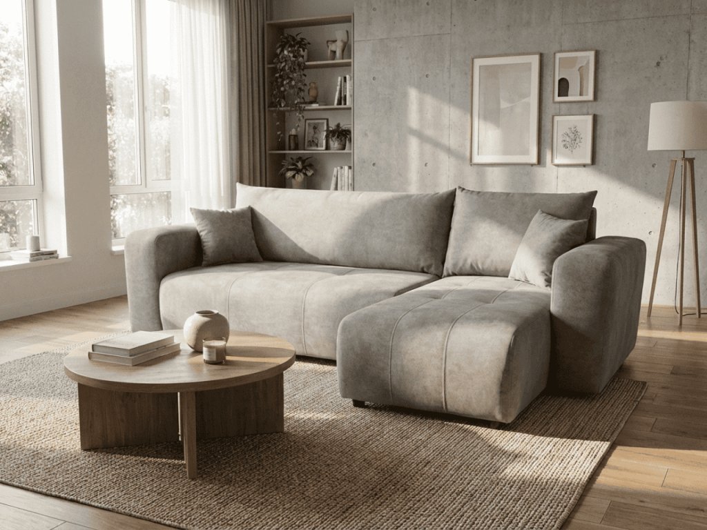 Svjetlosiva razvlačiva kutna garnitura SORELA, obostrana + 2 jastuka GRATIS MANILA 15
