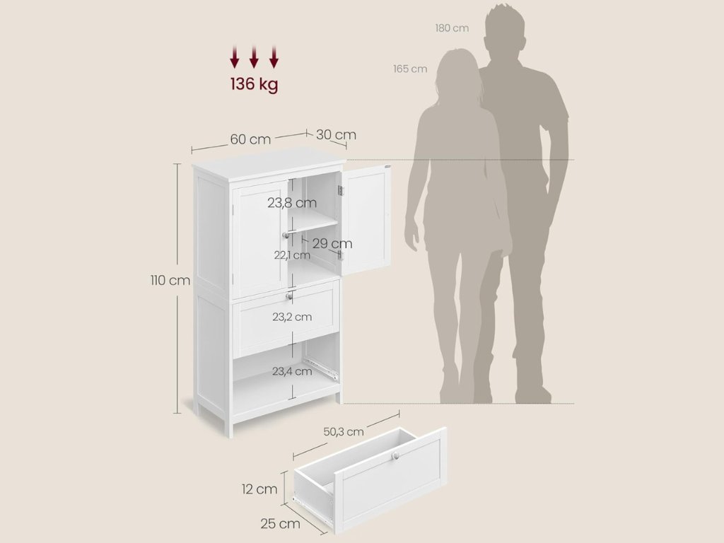 - Ormar za kupaonicu s ladicama i ormarićem