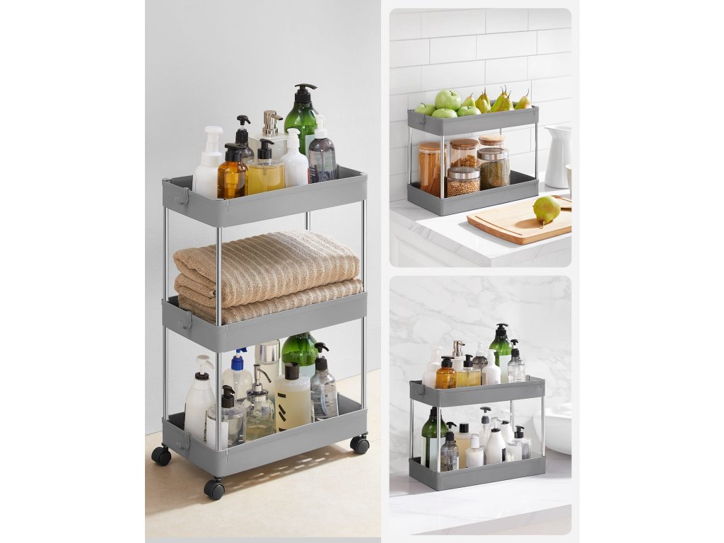 Multifunkcionalni regal na kotačićima MOBIX s 3 košare, sivi