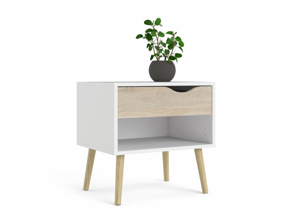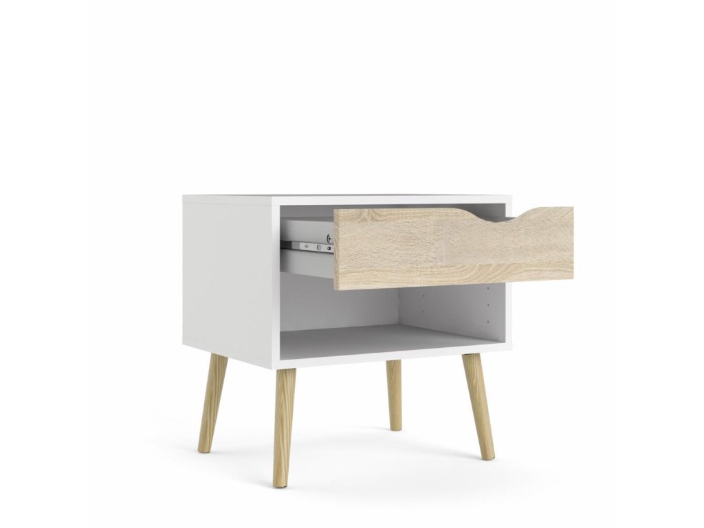 Bijeli noćni ormarić s dekorom hrast sonoma OSLO 75394