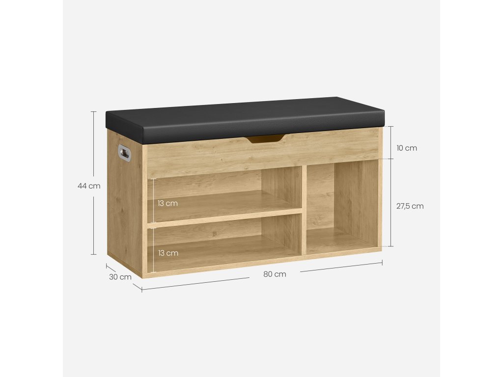 Ovaj ormarić za cipele s integriranom klupom predstavlja funkcionalno rješenje za svaki hodnik. Kombinira udobno sjedenje prilikom obuvanja s dovoljno prostora za pohranu cipela, dodataka ili sitnica koje želite imati uvijek pri ruci. Otvoreni pretinci i zatvoreni prostor omogućuju pregledno organiziranje obuće i pomažu održati red čak i u užurbanijem kućanstvu. Zahvaljujući kompaktnim dimenzijama, pogodan je i za manje hodnike gdje maksimalno iskorištava dostupan prostor. Tapecirano sjedalo osigurava udobnost i istodobno naglašava moderan izgled ormarića, koji se lako uklapa u različite stilove interijera.
