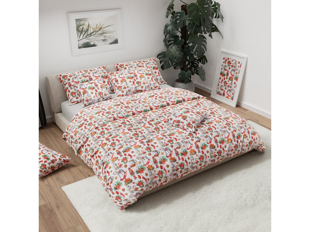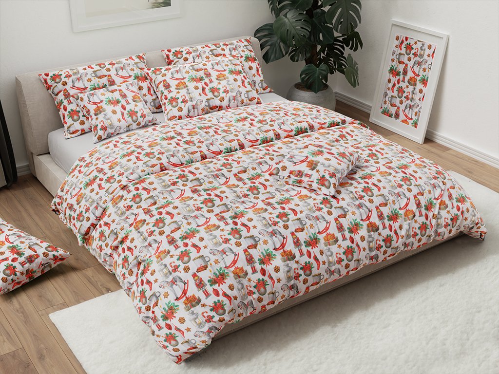Pamučna posteljina VESELÉ VÁNOCE bijela