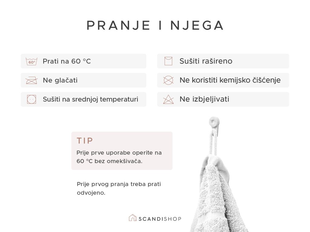 - Ručnici se ne smiju kemijski čistiti niti bijeliti