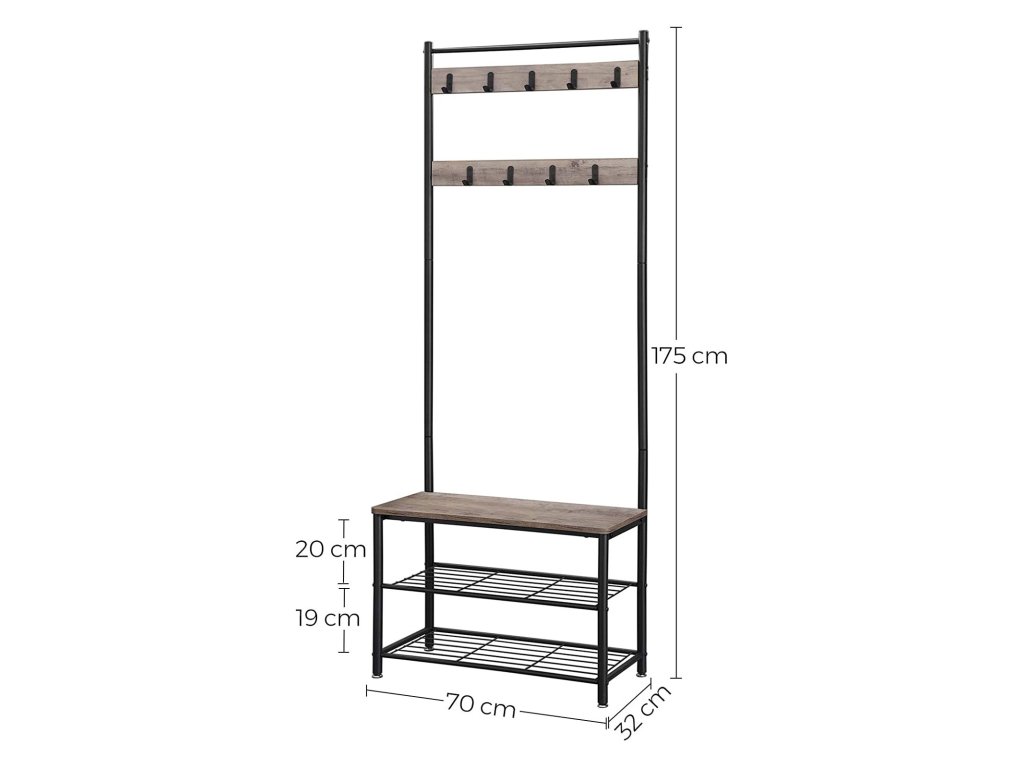 Metalna predsoblijska stena INDUSTRY 175 cm, crna/sivkasto smeđa