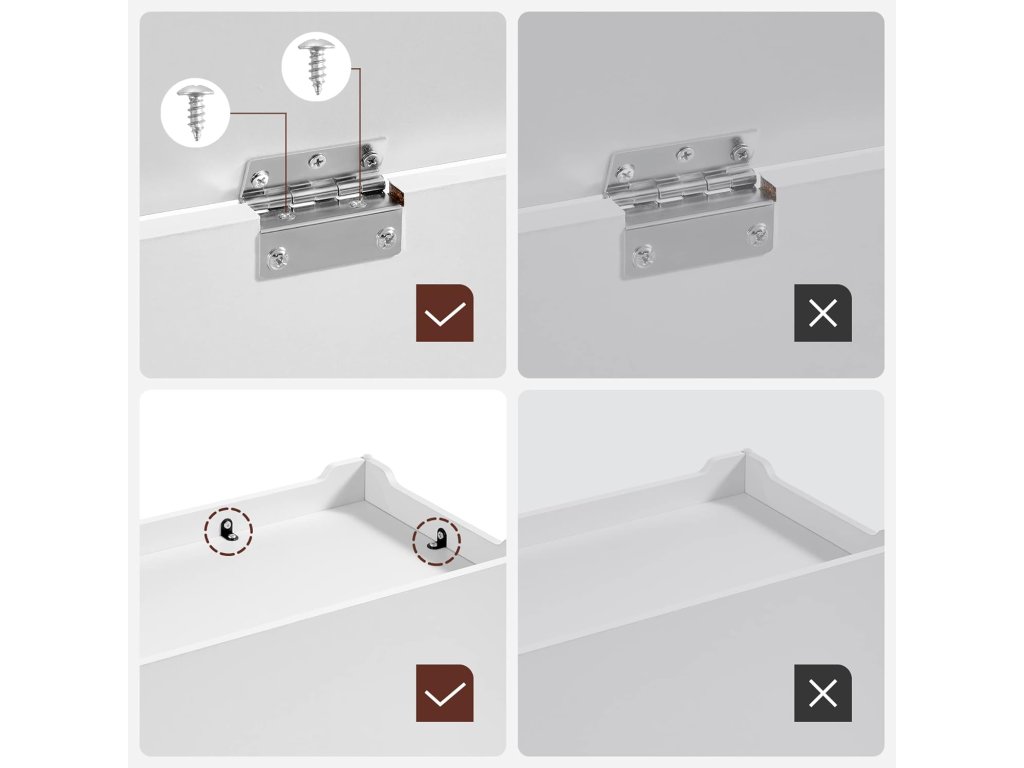 - Poklopac je opremljen čvrstim šarkama i zglobovima koji drže škrinju otvorenom pod kutom od 60 stupnjeva i manje