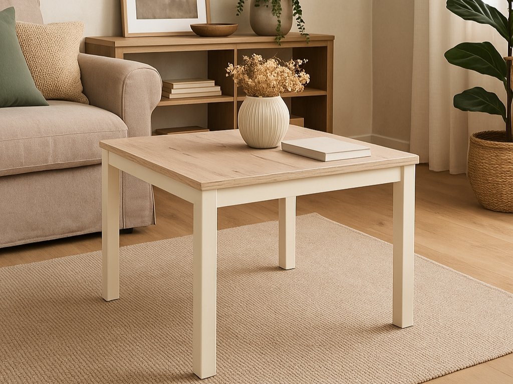 Elegantan i praktičan stolić, koji će svojim kompaktnim dimenzijama savršeno odgovarati manjim prostorima. Svijetla nijansa alpinskog hrasta u kombinaciji s krem konstrukcijom unosi prozračnost i lakoću u interijer. Pogodan je kao pomoćni stolić uz kauč, mjesto za odlaganje kave ili dekorativni element s cvijetom ili lampom. Zahvaljujući izdržljivim materijalima i čvrstoj specifikacije, pouzdano će vam služiti svakodnevno.