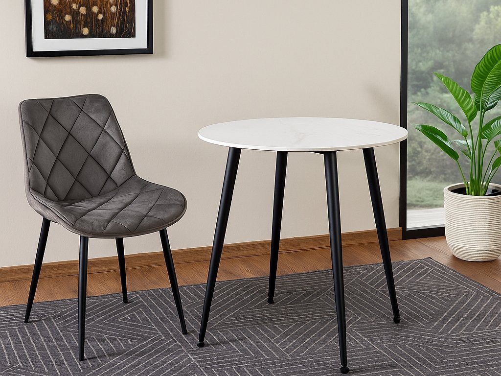 Okrugli blagovaonski stol RION 90 cm s keramičkom pločom, bijeli mramor