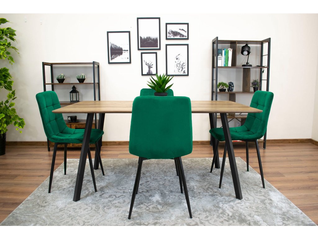 Stil spaja jednostavne oblike i visoku funkcionalnost. Osigurajte suptilne dodatke, nježnu paletu boja i prirodne materijale. Izvrsni dodaci za skandinavsku blagovaonicu su zimzelene biljke, šarena prostirka i velike metalne lampe. Skandinavski interijer ne može bez velikih prozora i rasvjete koja osigurava svjetlo čak i tijekom kratkih dana. Zelena blagovaonska stolica Kara savršeno će se uklopiti u blagovaonicu inspiriranu skandinavskim zemljama. Jednostavno prošivanje i crne noge uskladite sa stolom s metalnim elementima. Izvrsno izgledaju različite boje stolica uz jedan stol. Ne bojte se promjena.
