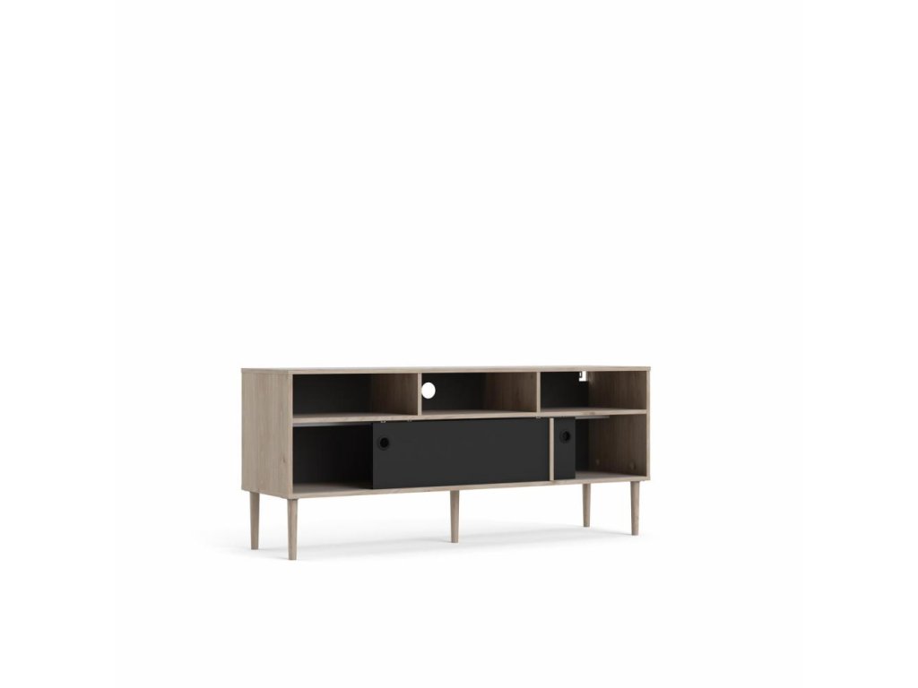 Crni TV stolić ELISEO u dekoru hrast Jackson Hickory