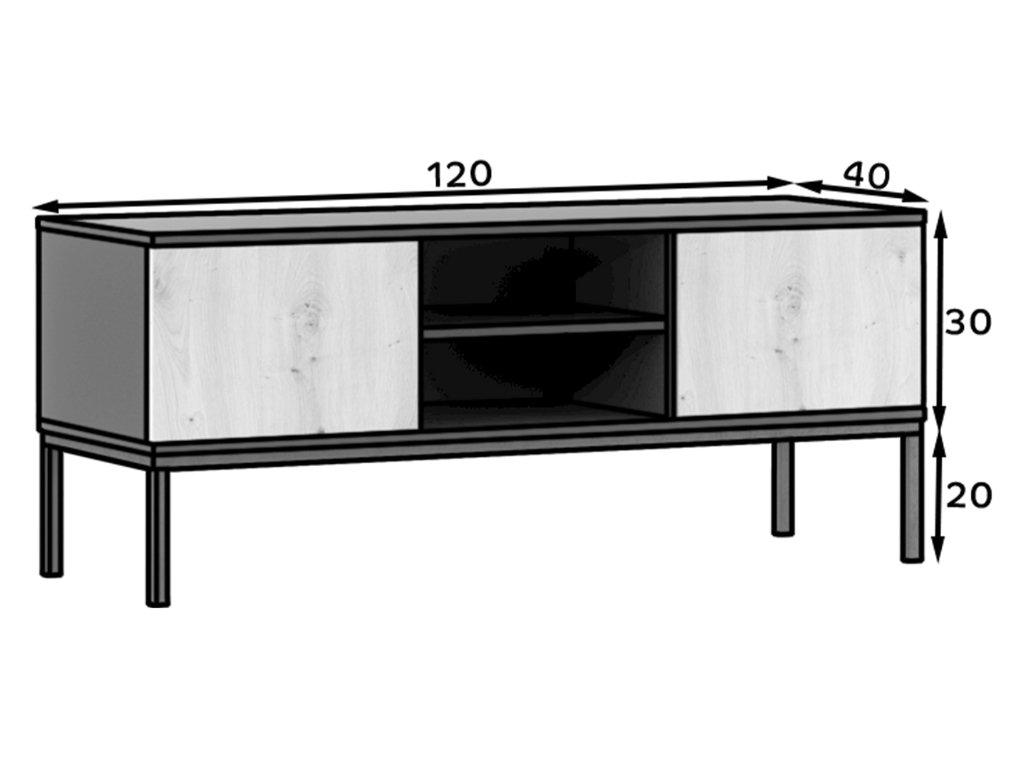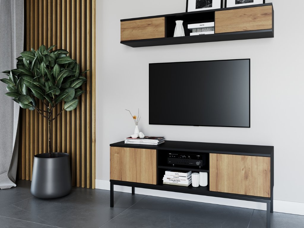 TV stolić LANZZI 120x40 cm, crna/dub artisan