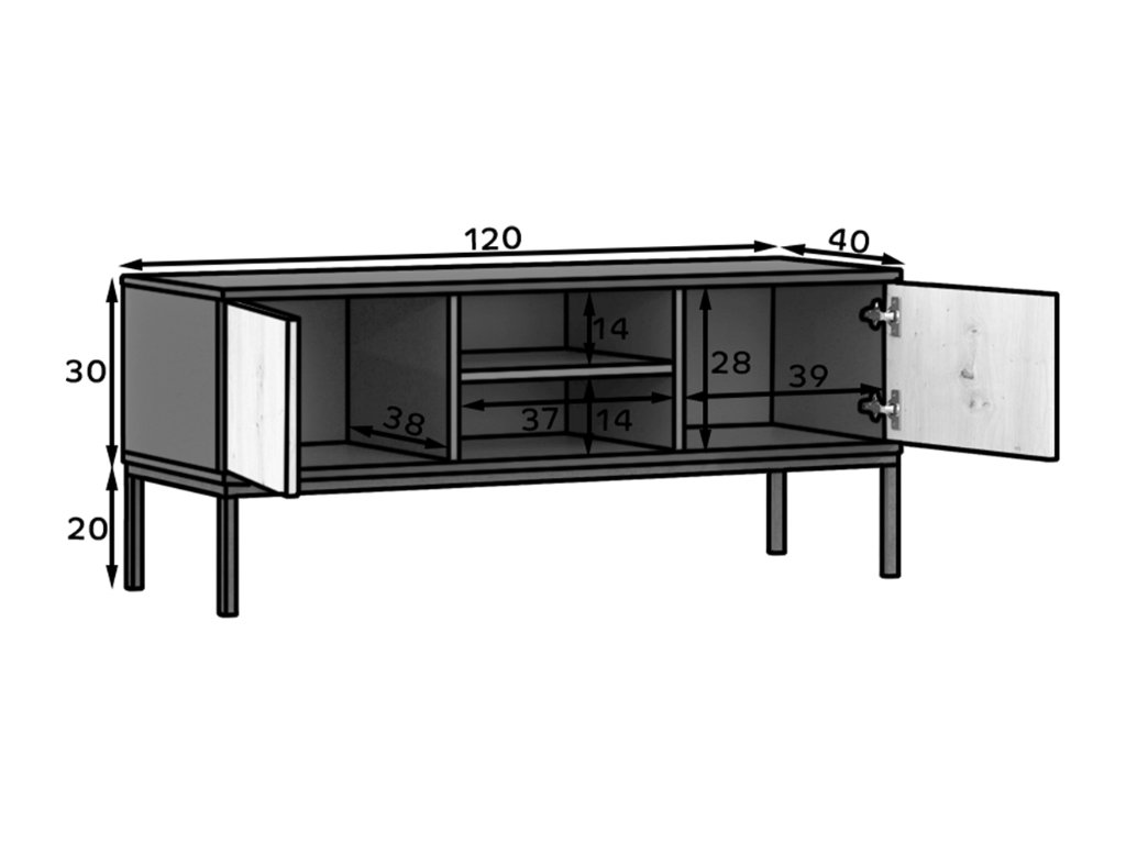 - TV stolić s ormarićima i otvorenim policama
