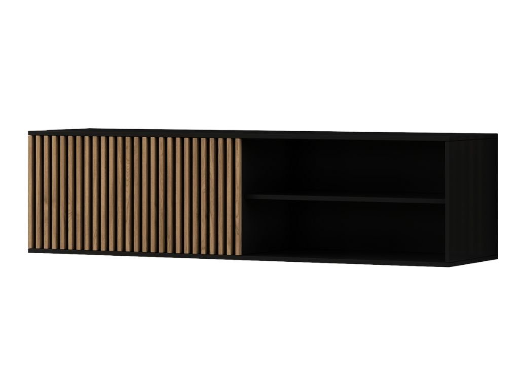 Viseca TV komoda MEORATI 150x40 cm, crna/hrast artisan