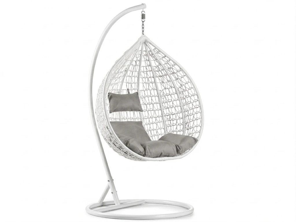 Bijela viseća stolica KOKON sa stalkom, svijetli jastuk