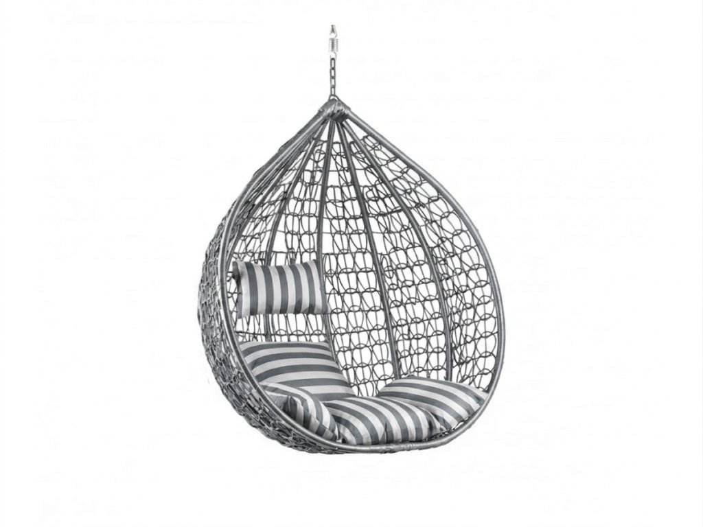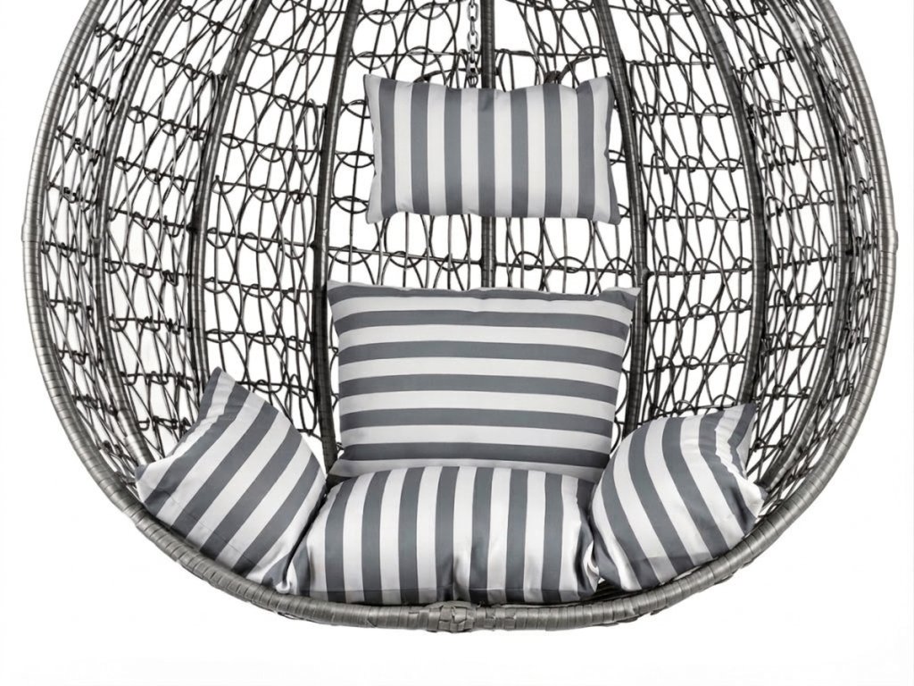 Siva viseća stolica KOKON bez postolja, bijelo-sivi jastuk