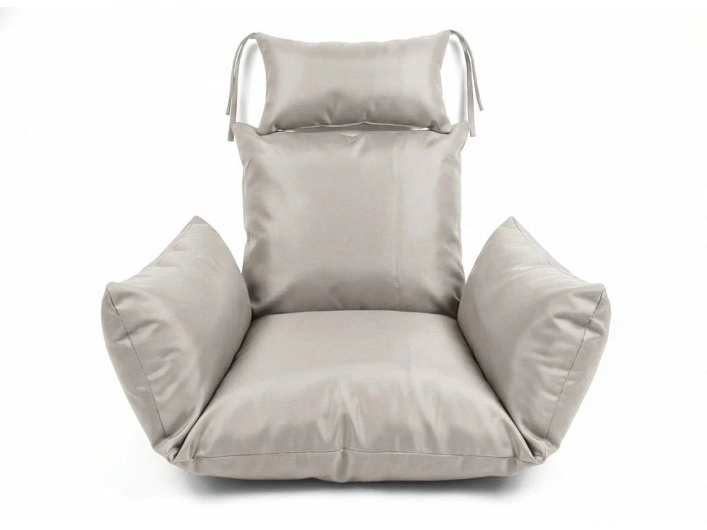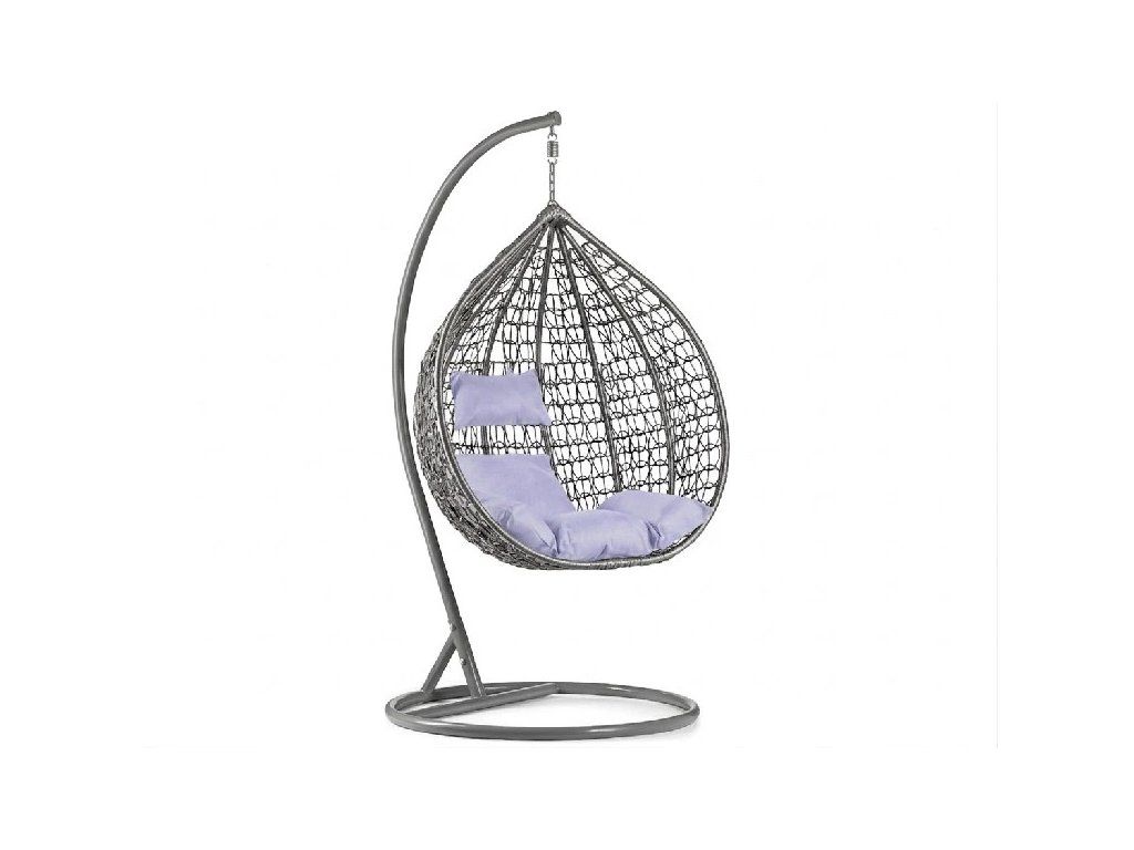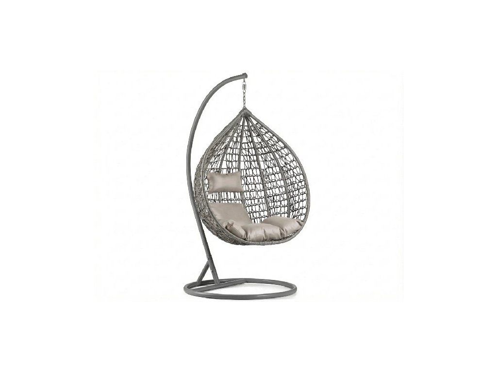 Siva viseća stolica KOKON sa stalkom, svijetli jastuk